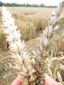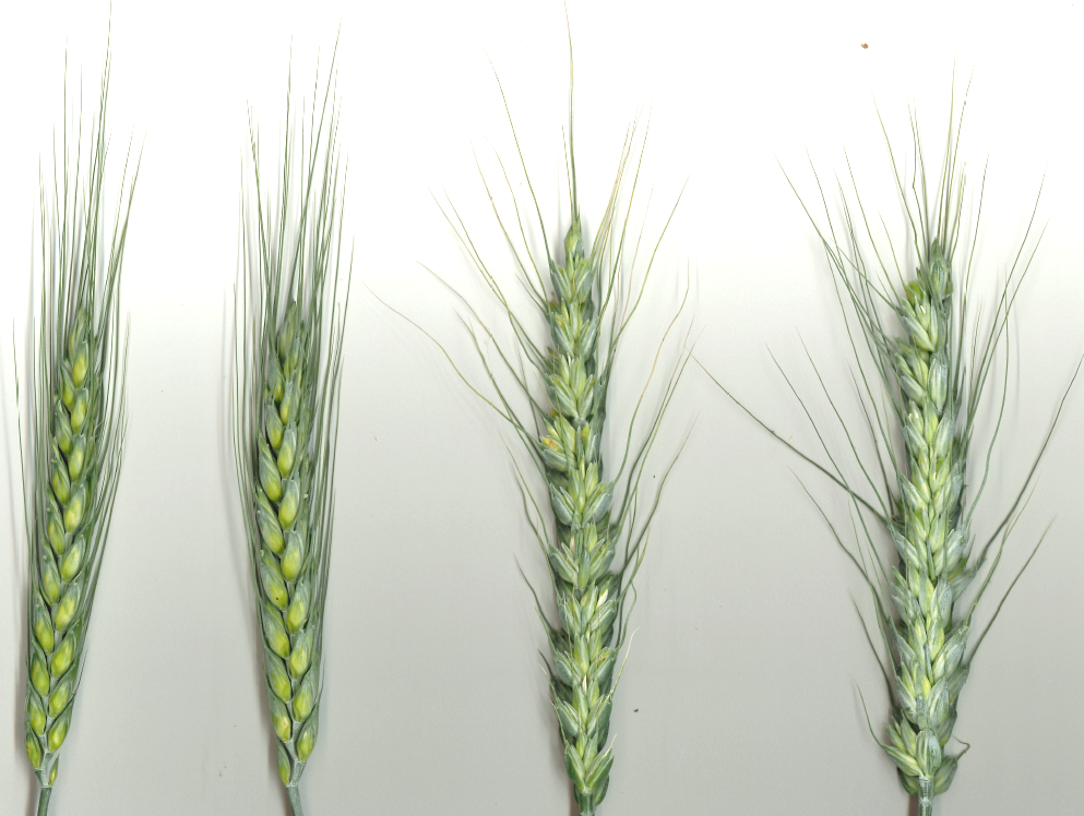 Dès l’épiaison : plante de coloration bleue-verdâtre, épiaison plus précoce, tiges plus courtes, aspect « ébouriffé » de l’épi dès la floraison.