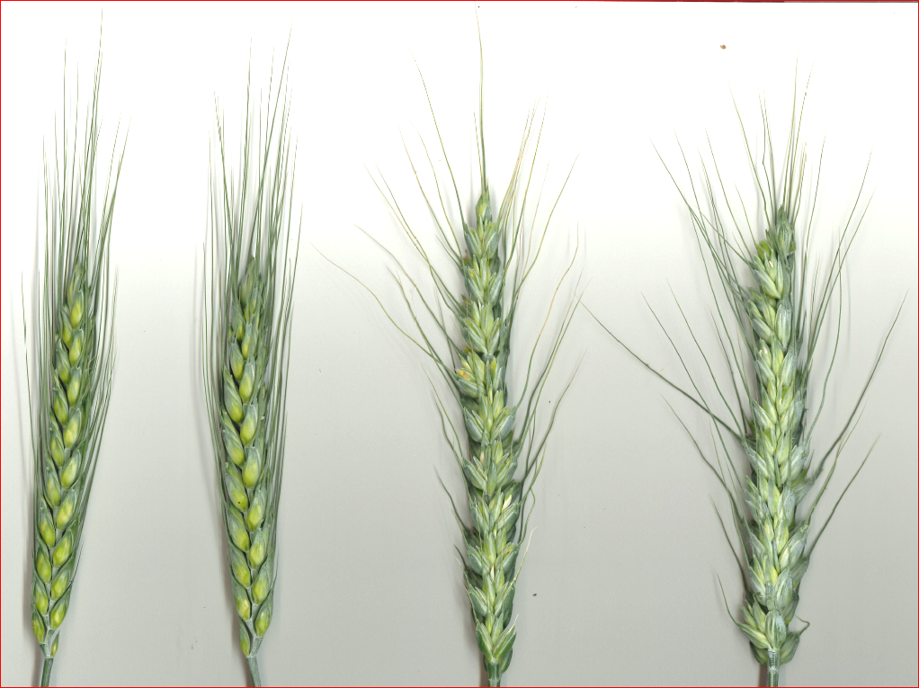 Dès l’épiaison : plante de coloration bleue-verdâtre, épiaison plus précoce, tiges plus courtes, aspect « ébouriffé » de l’épi dès la floraison.