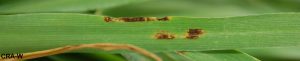 Symptômes de l'helminthosporiose sur les derniers étages foliaires. Photo prise le 31/05/2018. Source : CRA-W.