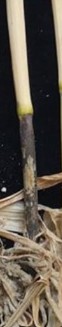 Gaeumannomyces graminis tritici est un champignon du sol qui infecte les graminées par la racine. Son pouvoir de dispersion naturelle est très faible (de l’ordre du mm) mais il peut cependant être disséminé sur de plus longues distances par le travail du sol. Les plantes infectées présentent des racines nécrosées et noires sur plusieurs centimètres. A l’épiaison, les plantes fortement touchées sont complètement échaudées et prennent une couleur blanche de paille sèche. Les symptômes se présentent en foyer suivant le sens du travail du sol. Les endroits du champ où les andains de paille de la culture précédente ont été déposés sont les plus marqués.